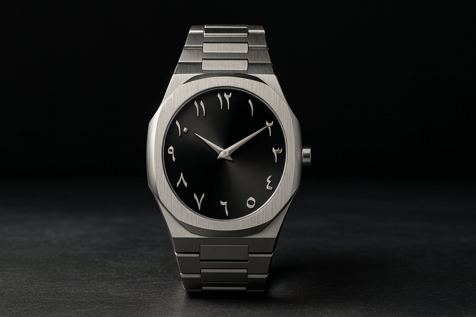 The 40 mm case, sculpted from 316L stainless steel, features clean geometric lines and an ultra-thin 6.8 mm profile, offering a refined balance of form and comfort. Beneath the scratch-resistant sapphire crystal, a deep black dial displays Eastern Arabic numerals, a graceful nod to the region’s enduring legacy of artistry and design.